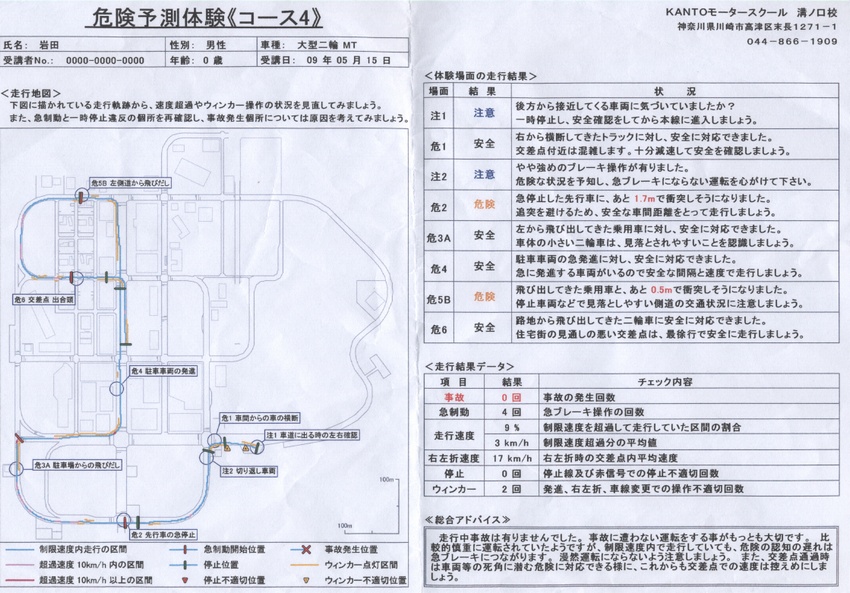 車のドアが開いたり、車が幅寄せしてきたりと、なかなか面白い教習だった。