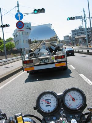 途中で鏡面仕上げのタンクローリー車が走ってたので、