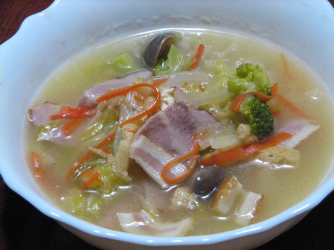 朝に野菜スープを食べる。炭水化物を採り過ぎると太るから気を付けなきゃ。
