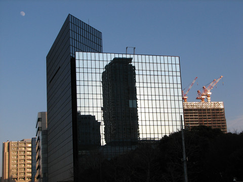 鏡面仕上げの建物とかタンクローリーとか、ガラスとか・・・反射物を