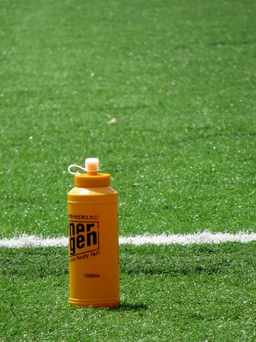 綺麗な芝生で女子がサッカーしてた。ピッチサイドでは、一眼レフ