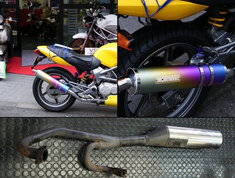 そこに水が溜まってまた錆始めたので、モリワキのチタンマフラー