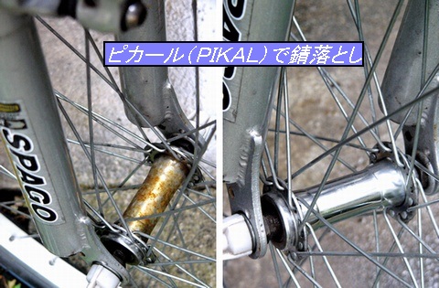 ピカールを布に付けてゴシゴシ拭いたら、意外とあっさりとサビが落ちた。