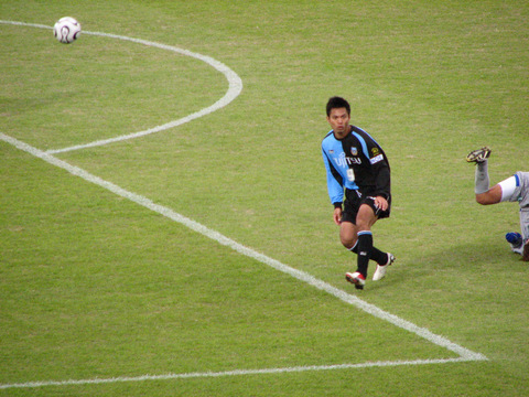 終了間際に中村憲剛 のFKから、谷口が蹴りこみキーパーが弾いた