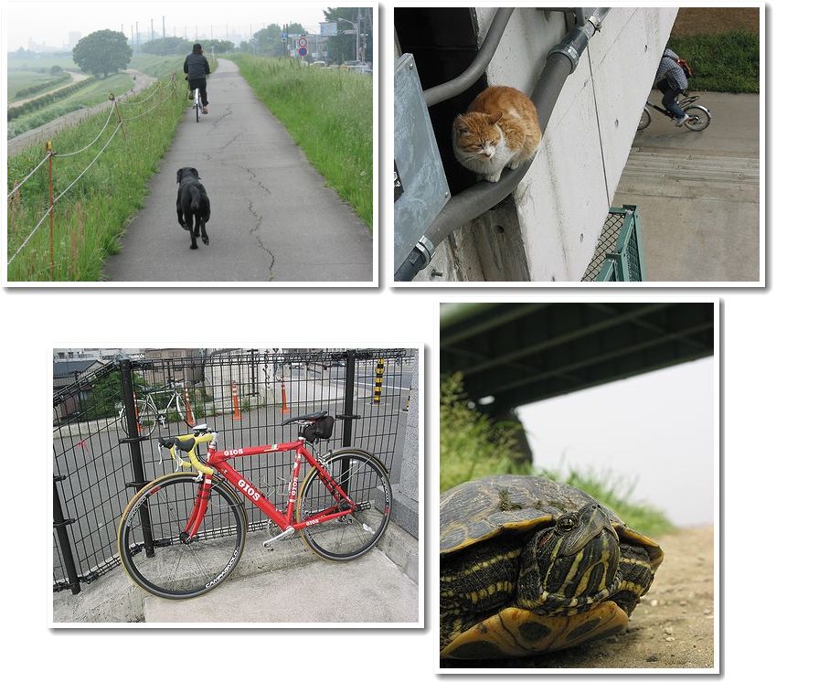 丸子橋の橋に猫がいた。落ちると危ない所でも猫は平気なんだな〜。