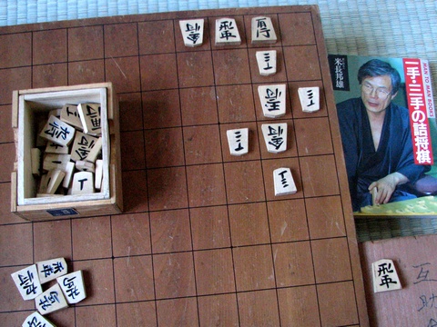 押入れに古い将棋盤が置いてあったので、詰め将棋の本を自宅から