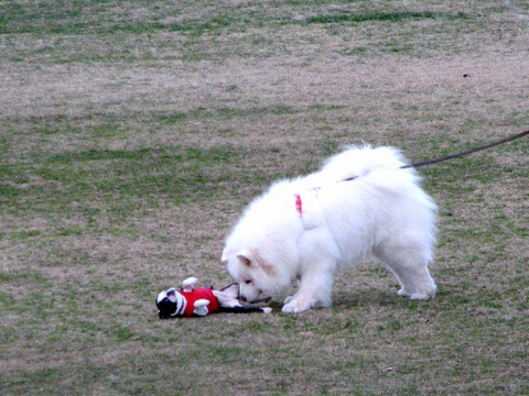 右は「サモエド」というロシアの犬 。スピッツかな?と思ったけど。トイプードルもサモエドも大きい!