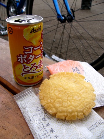 チャリで近くの公園へ行って休憩、今日の「おめざ」を食べる。