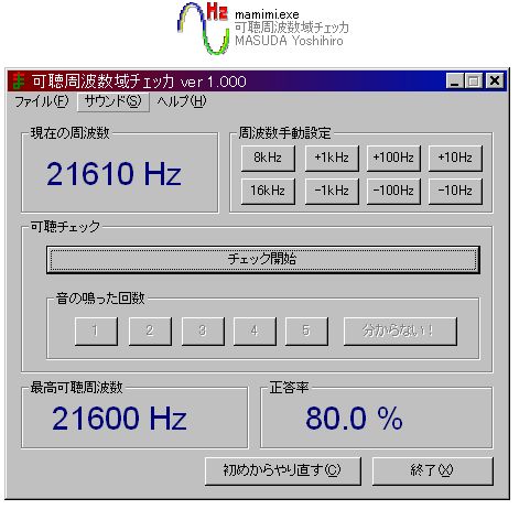 どこまで高い音が聞こえるかをテストできるソフト「可聴周波数域チェッカ」