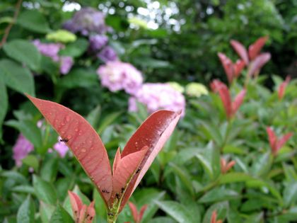 何で新芽が赤いんだろう? アリ君は何してるんだろう?