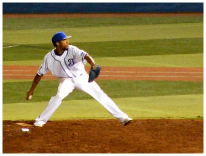 ダイナミックなフォームで投球練習するたびに、観衆のどよめきが。