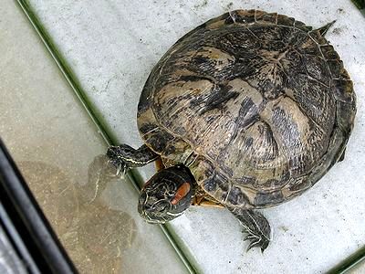 玄関の水槽にいたカメ。もう20年くらい生きてるって(゜▽゜;)