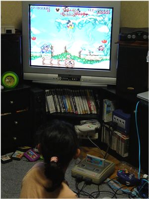 なんかゲームしたいっていうので、スーファミを接続して、