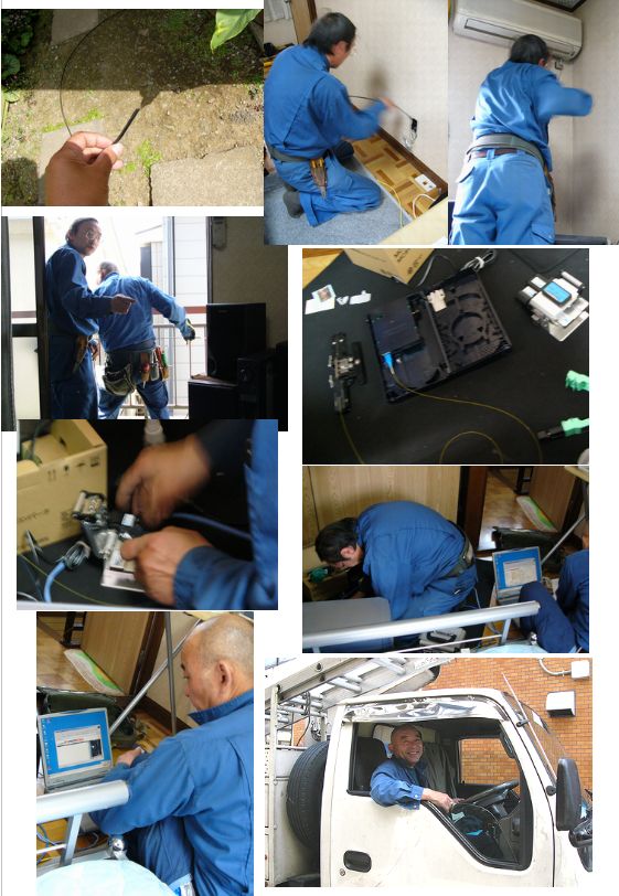 8時半前に工事の人が到着。最初は電話線の引き込み口から、