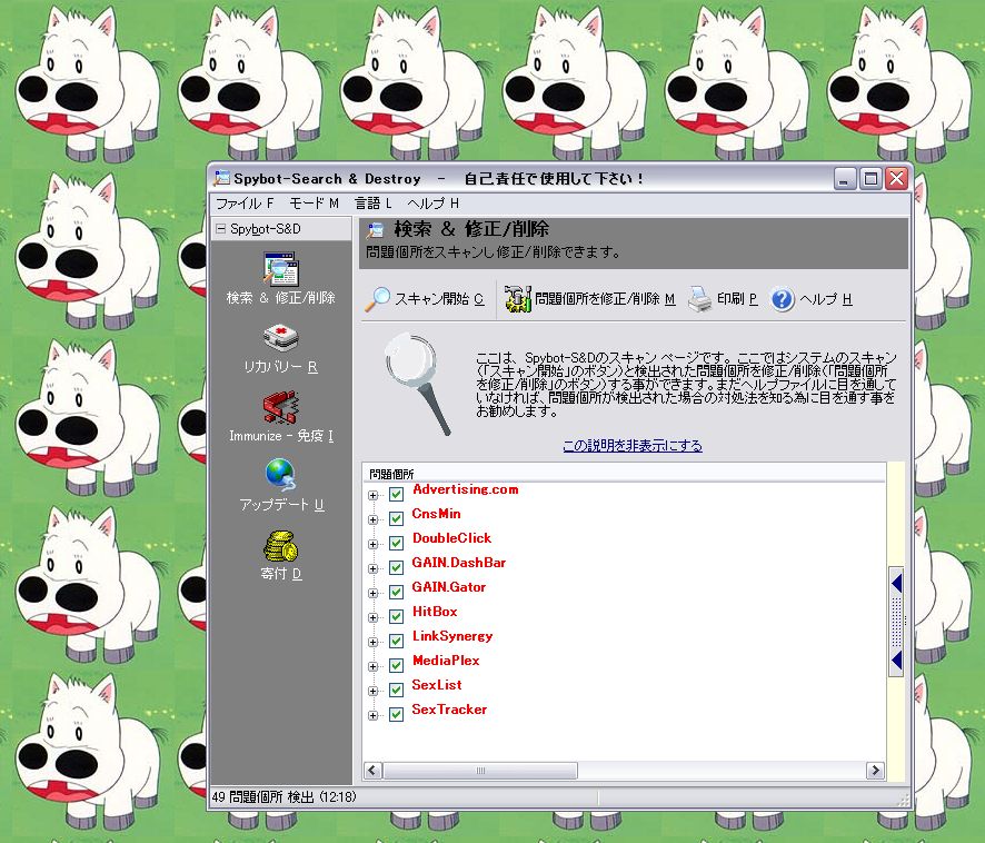 オンラインでウィルス診断したら、スパイウェアがいっぱい