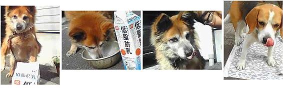 自宅から牛乳と犬のクッキーを持ってった。腹が減っているとあって