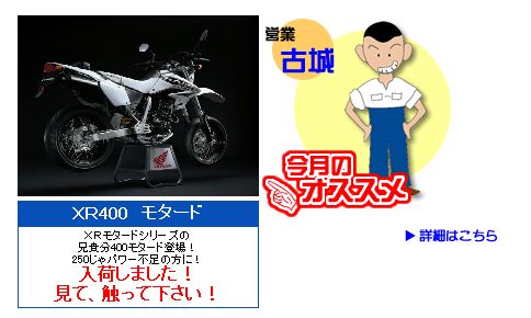 買う時に古城さんお奨めのオフロード車・XR(250とか)に