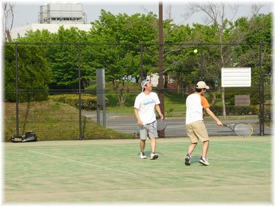 対抗戦に最近ガットを張ったラケットを持っていった、こーきさんと練習で