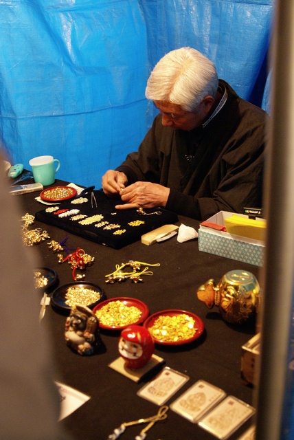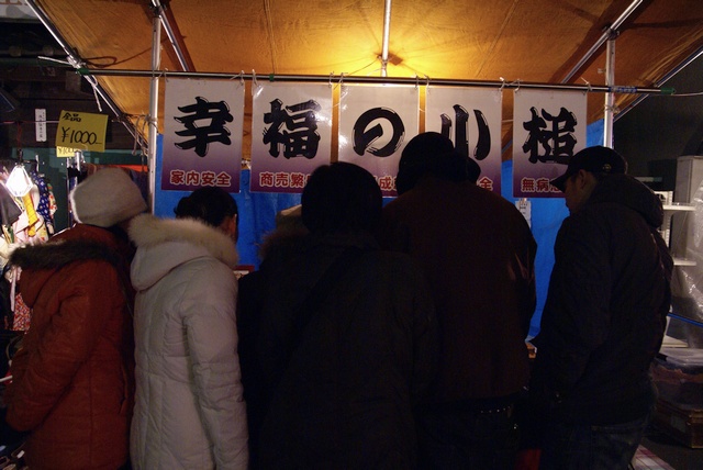 1/16 (金) 晴れ 「ボロ市で 食べたかったな 代官餅」 卓球の全日本選手権を観戦に行こうかな~?と、あれこれ考えて いるうちに時間が経ってしまい、午後に世田谷のボロ市に出かける。 今日は昨日に比べて風が無く寒くない。骨董品はそんなに興味無いし、 古着も・・・、それよりか日本各地の食べ物の出店の方が興味ある(∩。∩;)ゞ 結局200円の「けんちん汁」を食べて、「焼き鳥」と「餡餅(シャーピン)」という 餃子の具を、モチモチとした生地に包んだ物をお土産に買って帰る。 富士宮焼きそばも食べてみたかった~。