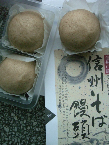 研究員の方から頂いた「そば饅頭」。先日「海老煎餅」のお土産を渡したので