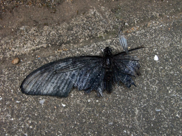 ちぎれたクロアゲハ蝶が。摘まみ上げたら羽根をバタバタさせて動いてて・・・。