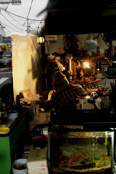 おじさんが、なんか修理してる。軽く会釈して(゜゜)(。。)ペコリ