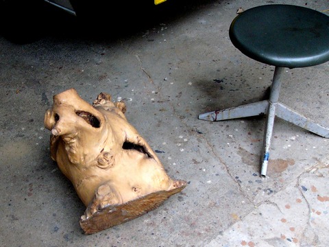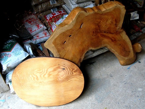 木の切り株を眺めてるおじいさんが居たので、「その木で何を作るんですか?」
