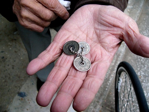 帰ろうとしたら、お財布から古銭を出して見せてくれた。